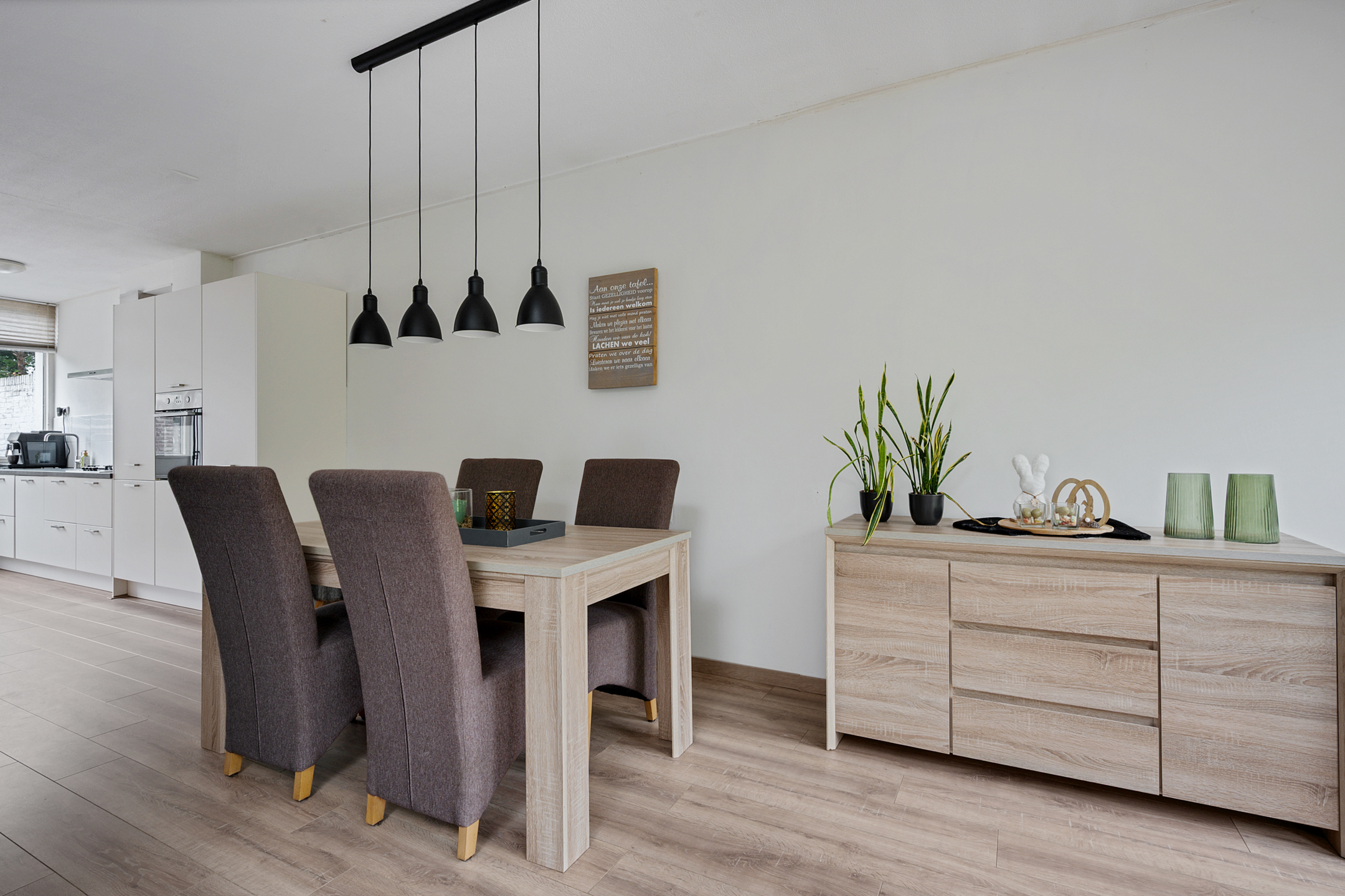 - moderne keuken (2020) voorzien van 4 pits gaskookplaat, vaatwasser, koelkast, vriezer, oven en afzuigkap;