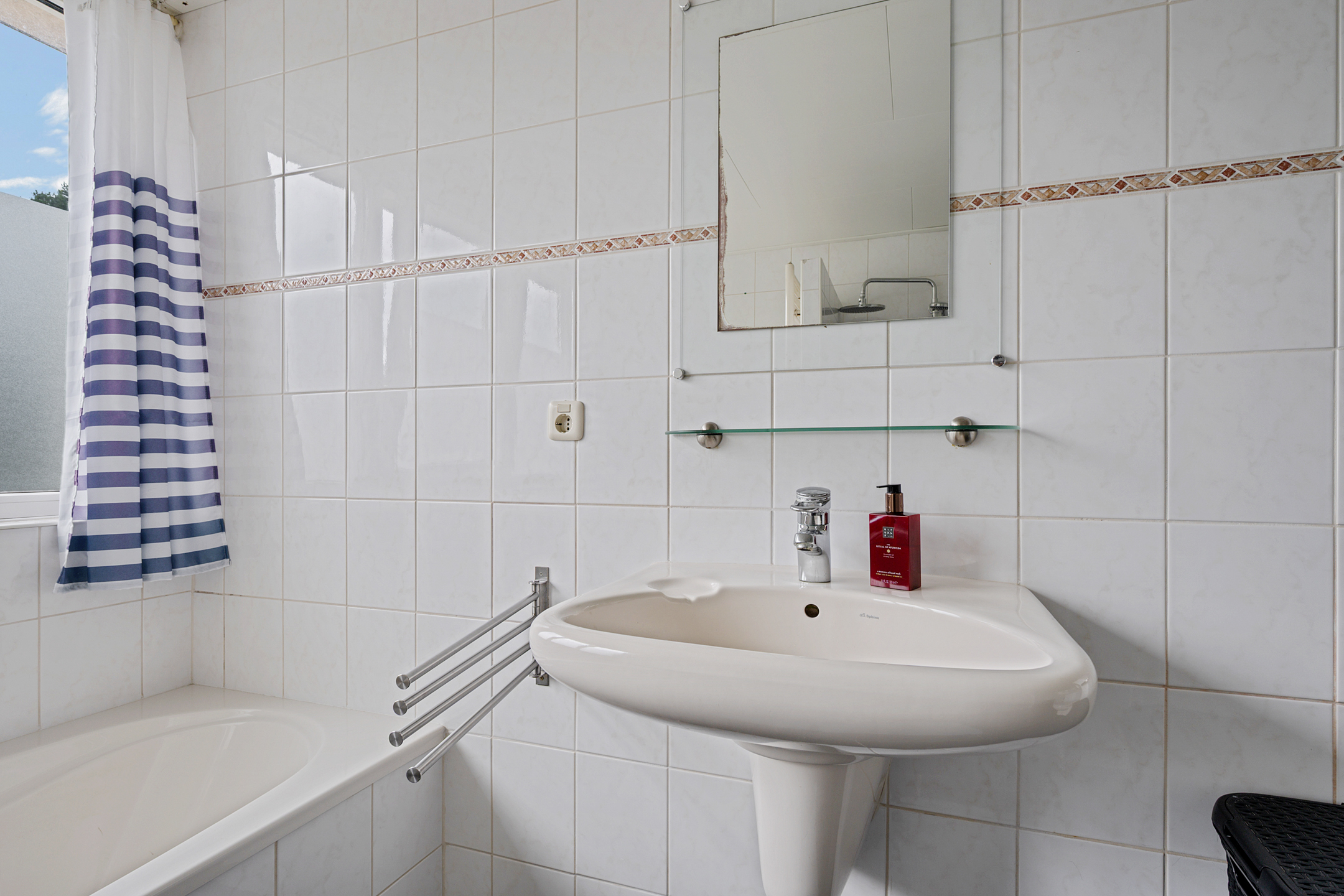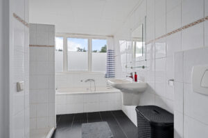 - royale badkamer met inloopdouche, ligbad, 2e toilet, wastafelmeubel en designradiator.