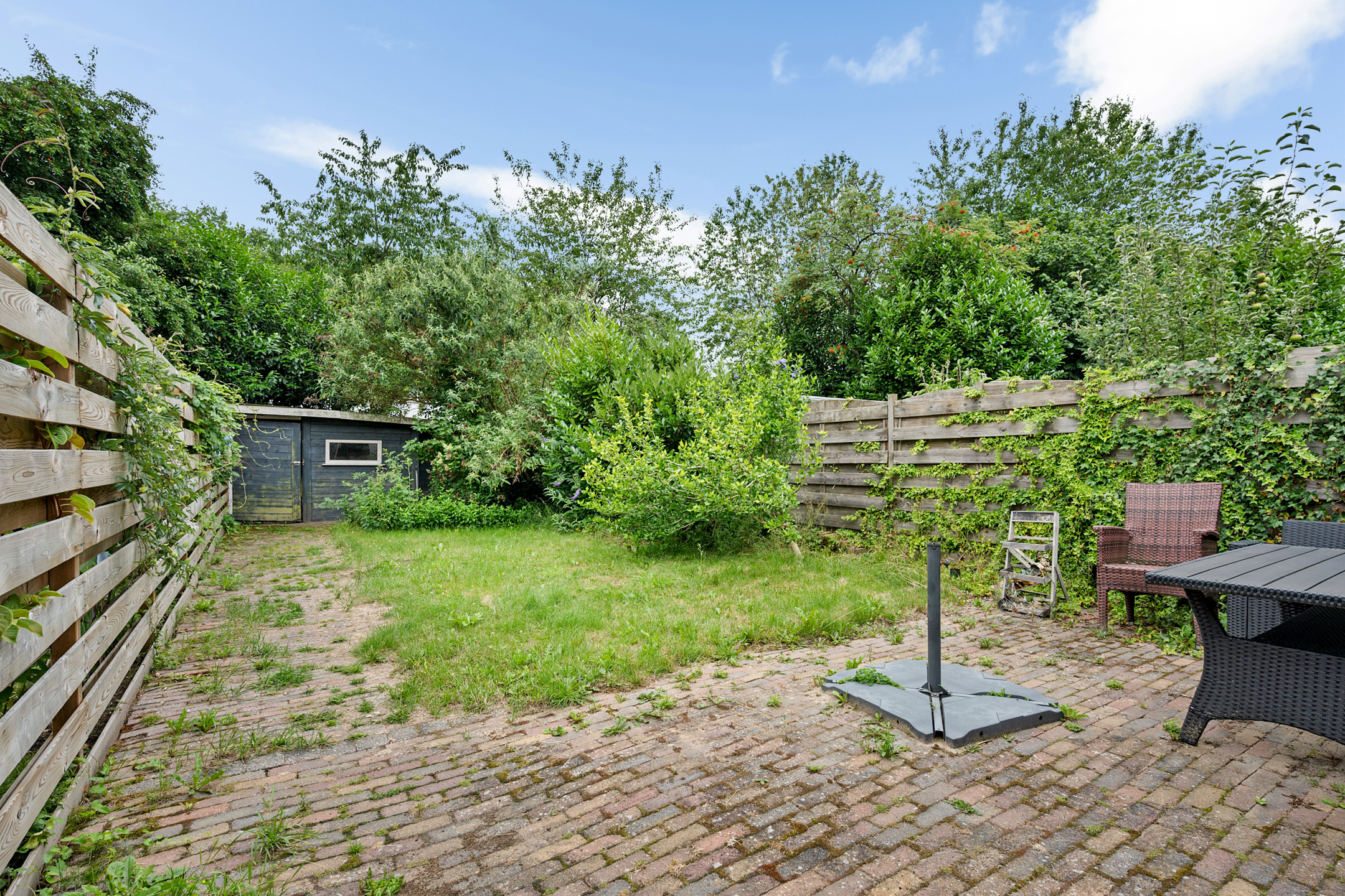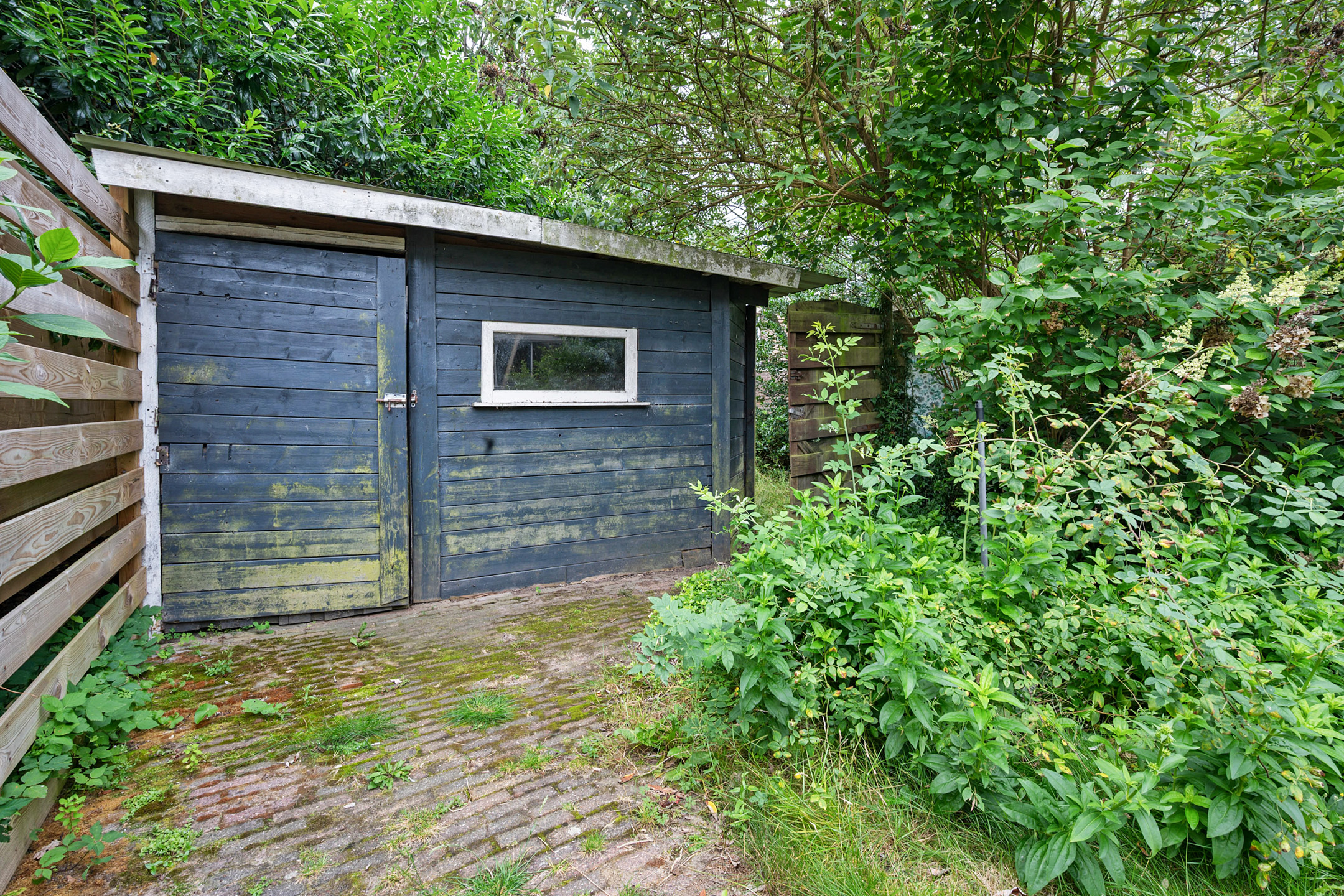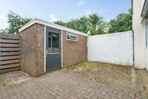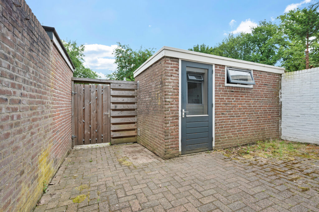 - houten schuurtje in de achtertuin voor tuingereedschap;