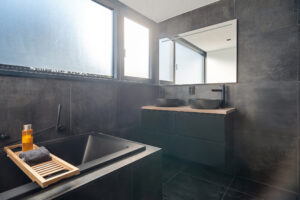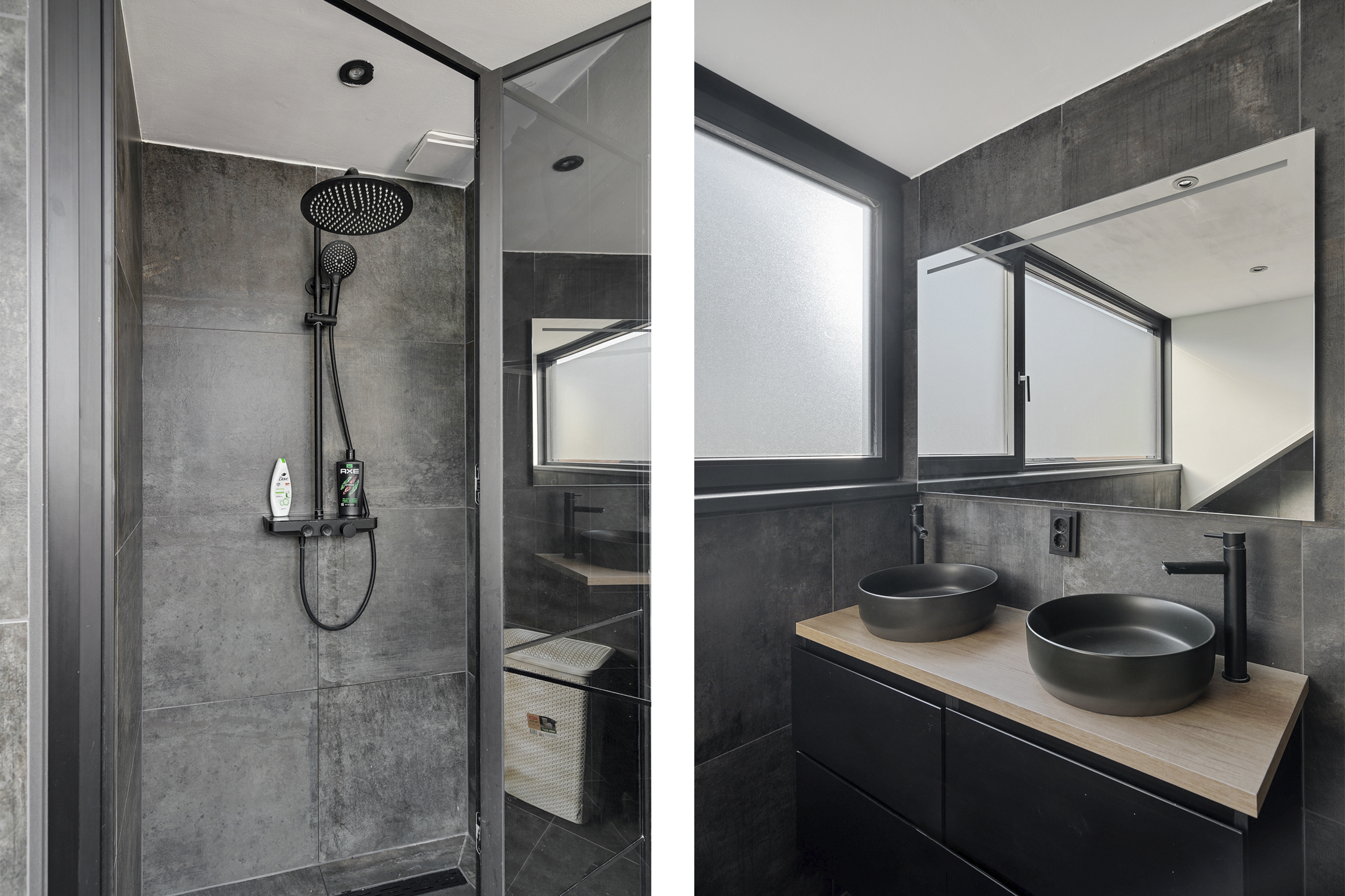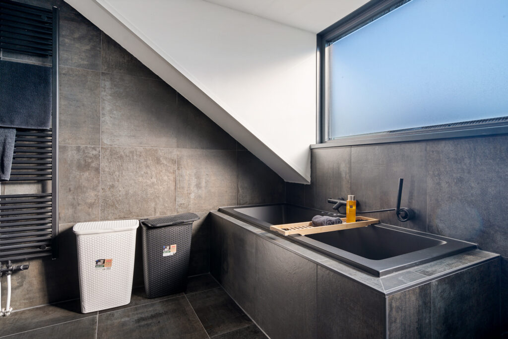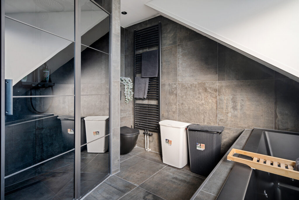 - nieuwe moderne, luxe badkamer (december 2024) voorzien van een ligbad met whirlpoolfunctie en massagejets, een dubbele wastafelmeubel, verwarmde spiegel met verlichting, grote inloopdouche en tweede toilet.