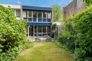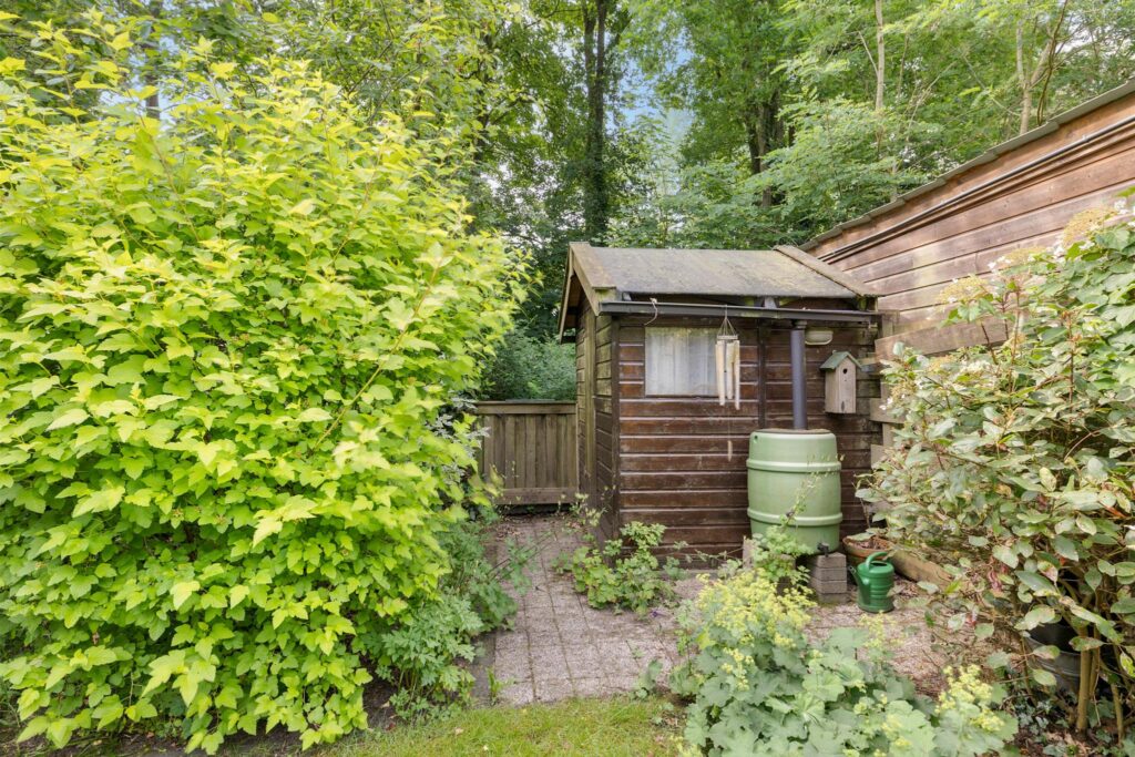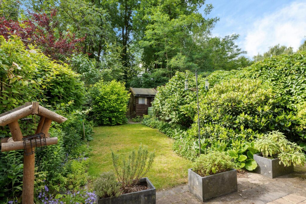 De woning beschikt over een beschutte voortuin en een fraai aangelegde achtertuin met een houten schuurtje. De tuin is op het zuiden gelegen, wat zorgt voor volop zon en een heerlijke buitenbeleving. Bovendien is de tuin achterom bereikbaar.