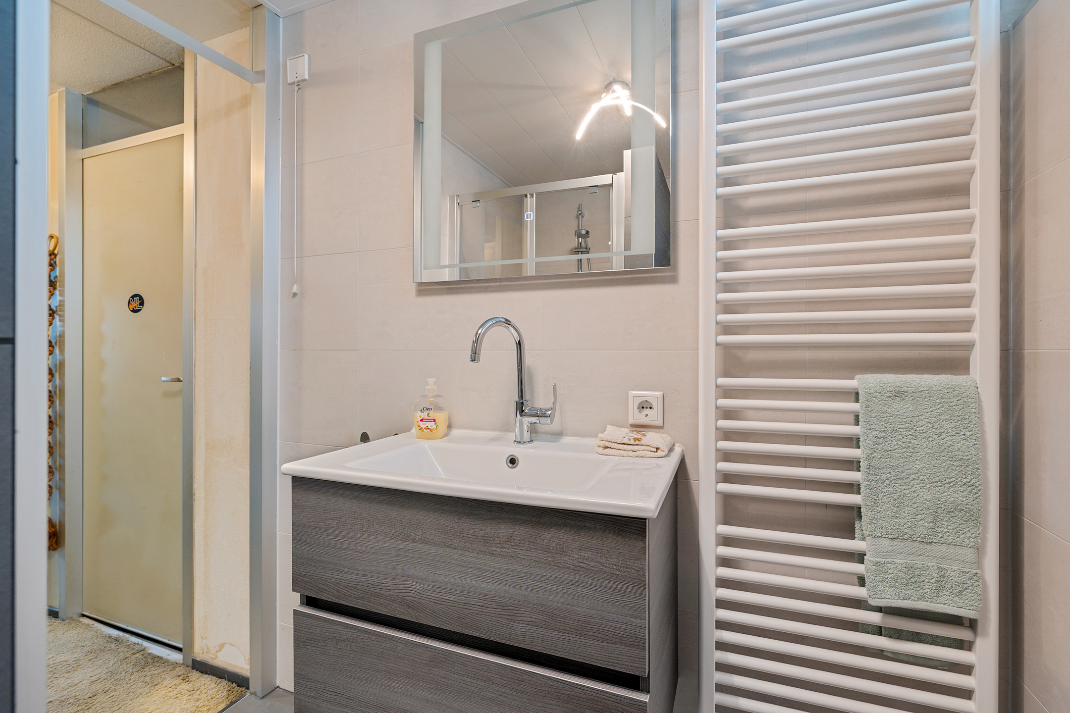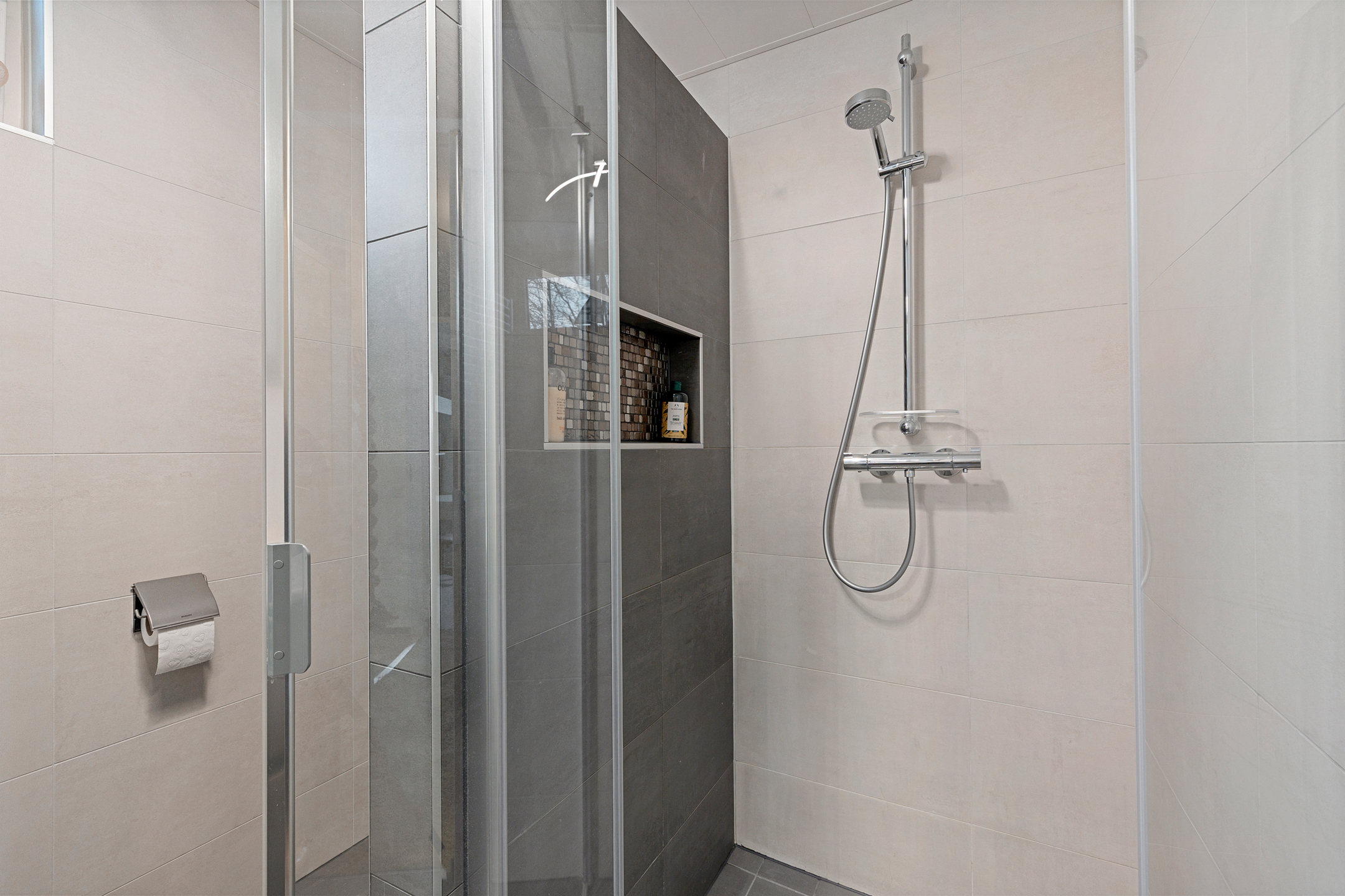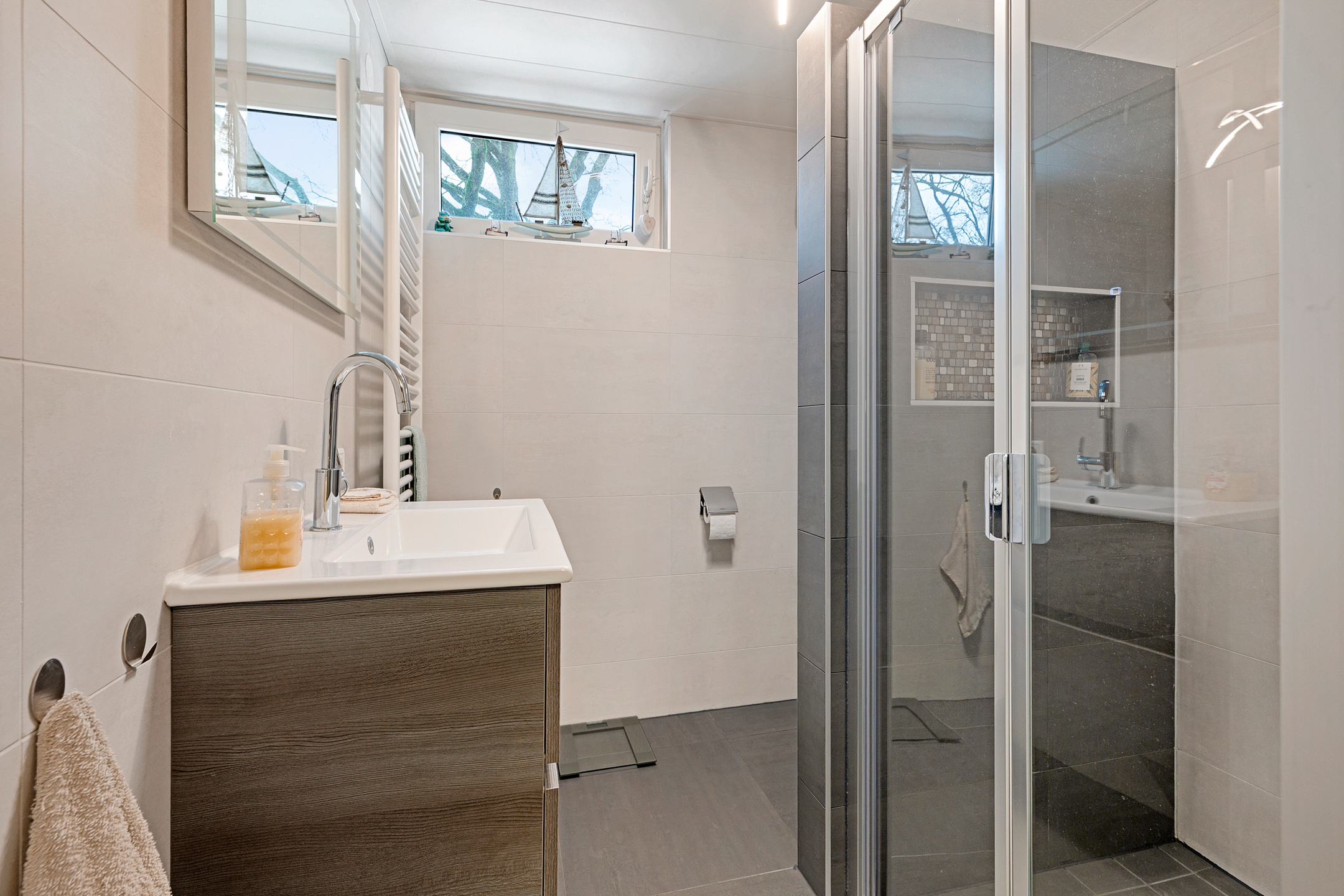 - moderne badkamer (2019) welke is voorzien van een douche, wastafelmeubel, tweede (hang) toilet en designradiator.
