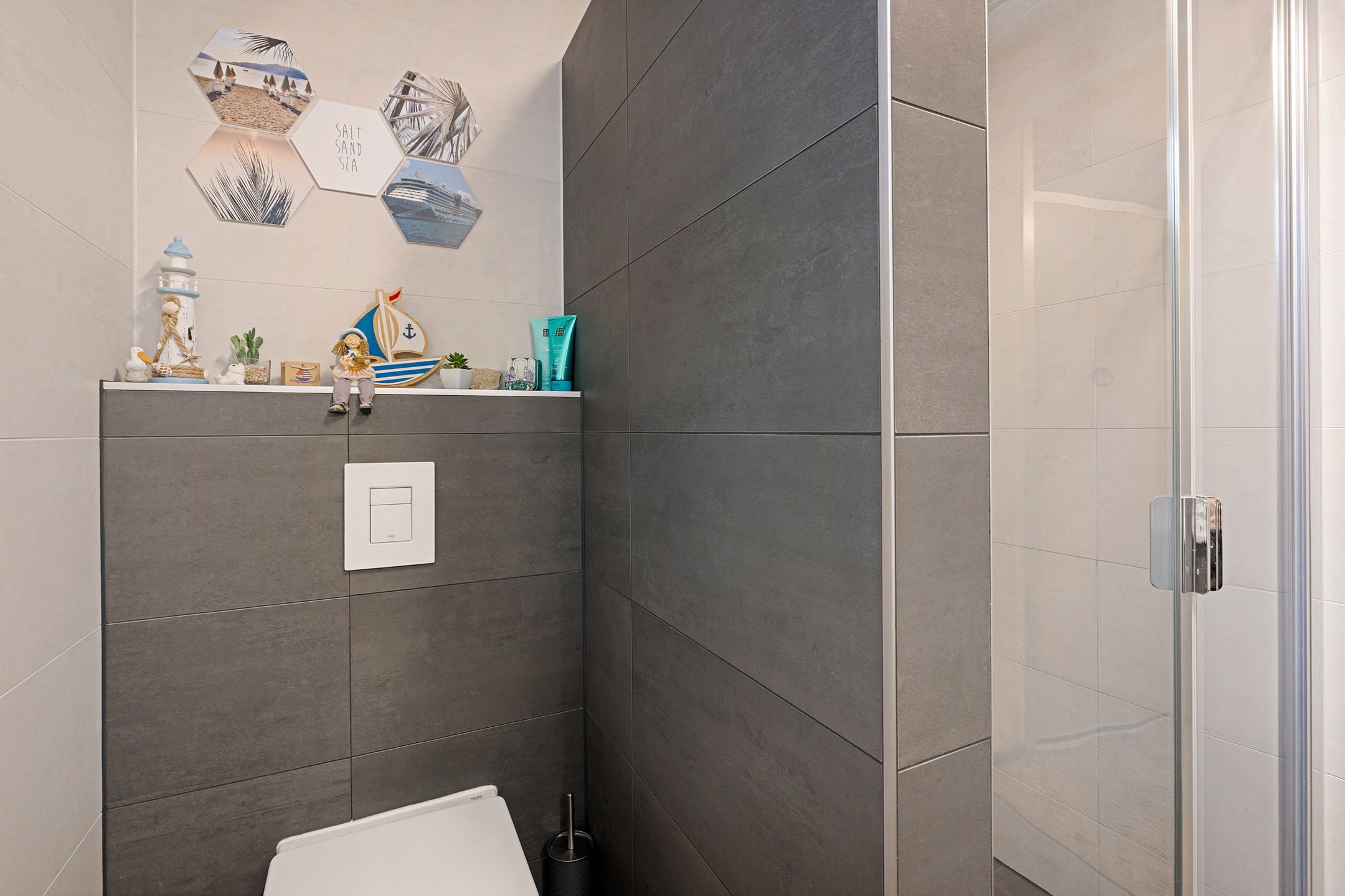 - moderne toiletruimte (2019) met hangtoilet en fonteintje;