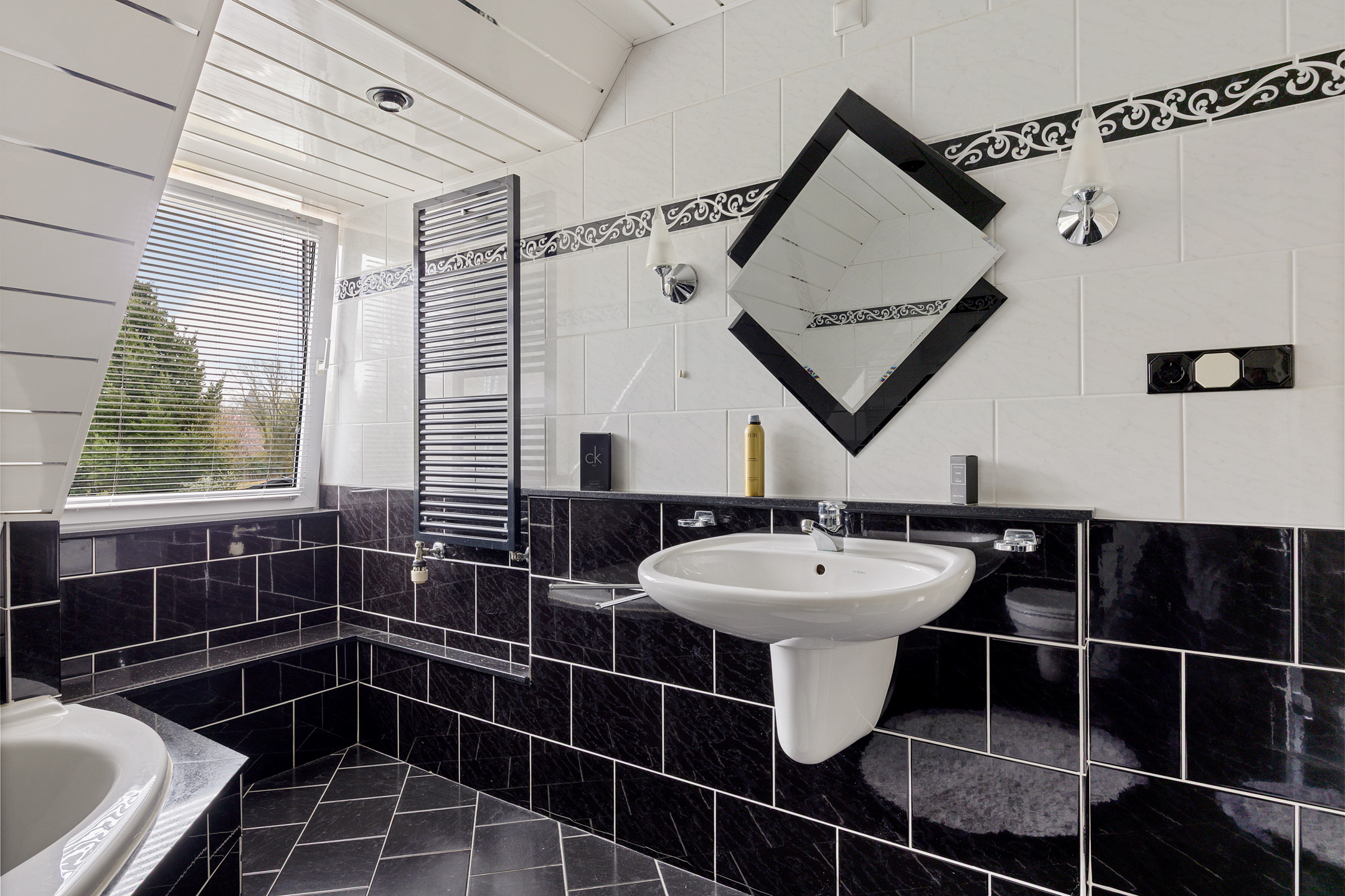 - badkamer voorzien van ligbad, douche, 2e toilet, wastafel;