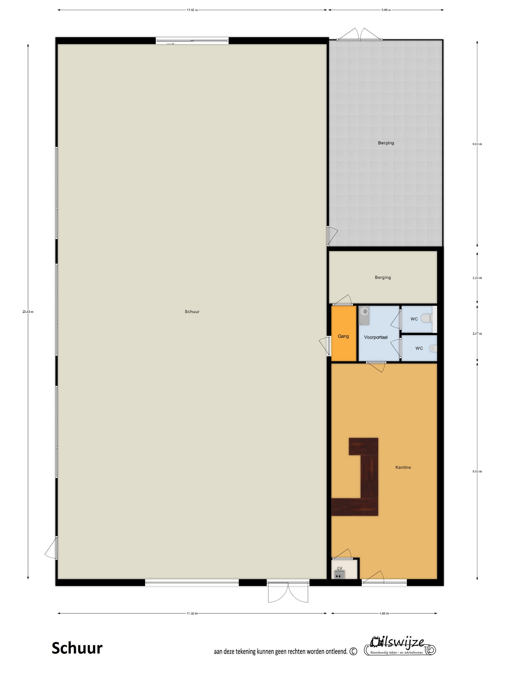 - opslag/garage/bergingen, voorzien van stroom en verlichting ca. 117 m² oppervlakte.