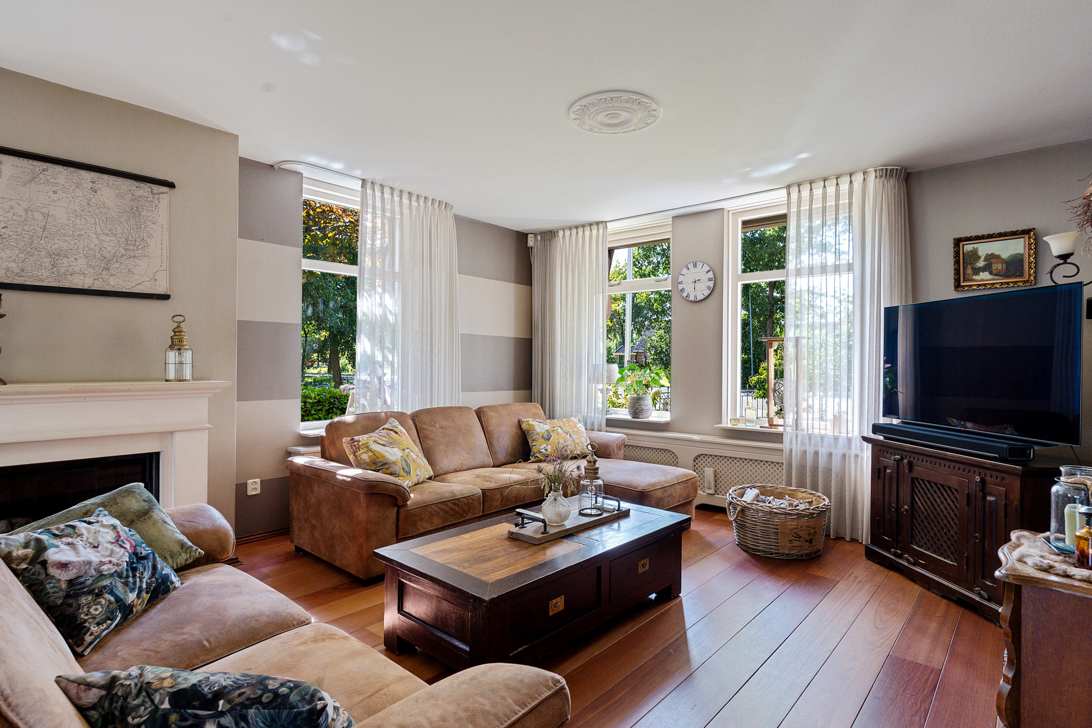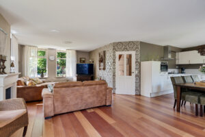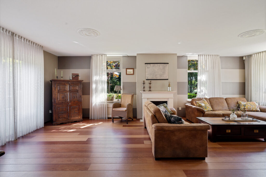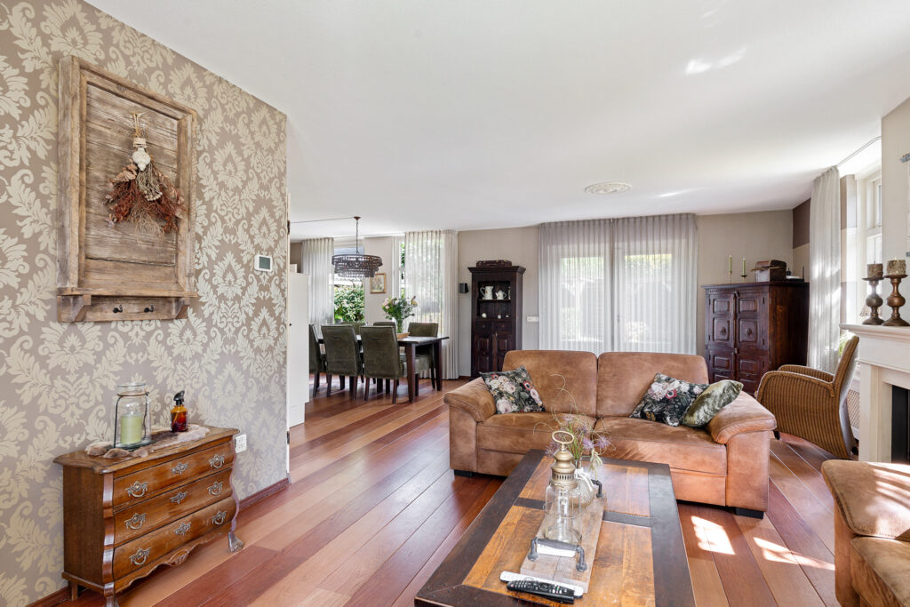 - ruime woonkamer, voorzien van gaskachel en 2 openslaande deuren naar de tuin/terras;