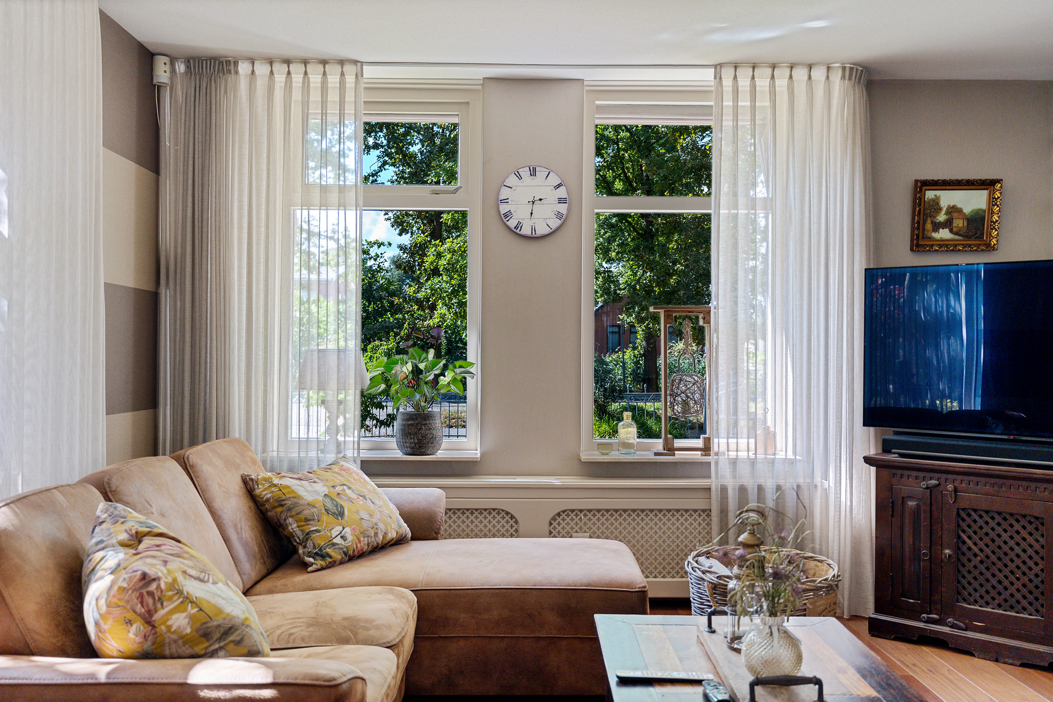 - markiezen voor de ramen van de woonkamer en kantoor/slaapkamer;