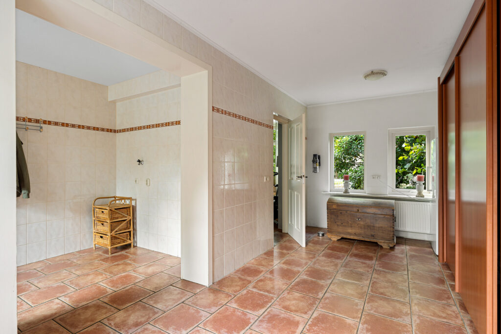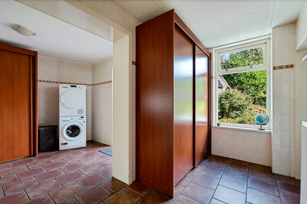 - berging/bijkeuken, voorzien van vaste kasten en opstelplaats voor de cv-ketel (eenvoudig een badkamer te realiseren).