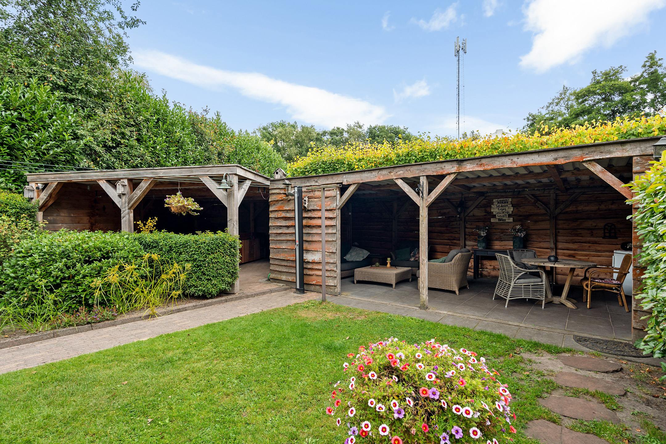 - 2 houten overkappingen;